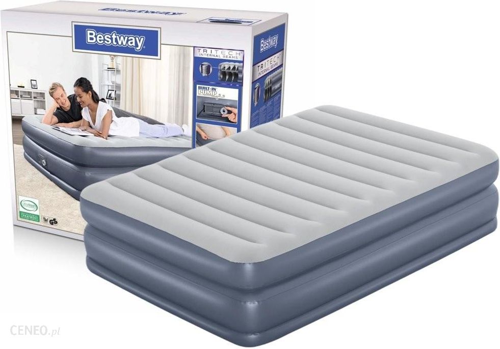 Nadmuchiwany materac z pompką 226 x 152 x 84 cm Bestway 67925Dwuosobowy dmuchany materac to gwarancja wygodnej i przespanej nocy. Dzięki wbudowanej pompce elektrycznej Twój materac samoczynnie napompuje się w 5 minut, co pozwoli Ci zaoszczędzić czas i siłę. Górna część pokryta jest miękkim flokowanym materiałem, który zwiększa komfort odpoczynku. Materiał, z którego został wytworzony materac jest wytrzymały, dzięki czemu nie będziesz musiał martwić się o jakiekolwiek uszkodzenia. Materac dopasowuje się do ciała i doskonale sprawdza się jako drugie łóżko w domu. Dzięki antybakteryjnej powierzchni Ultra-Fresh™ Twoje łóżko jest chronione przed rozwojem bakterii powodujących nieprzyjemny zapach i pleśni na powierzchni do leżenia.Zestaw zawiera:- Materac z pompką- Torba do przechowywania- Zestaw naprawczyDane techniczne: – Wymiary 226 cm x 152 cm x 84 cm- Maksymalne obciążenie 300 kg- Wbudowana pompa 230 V- Stabilna konstrukcja I-Beam- Powierzchnia pokryta miękkim materiałem- 4-warstwowa konstrukcja zapewnia wygodę i możliwość zastosowania standardowej pościeli na wierzchniej warstwie bez poślizgu- 51 cm wysokościWaga opakowania:11 kgWymiary opakowania:45 cm x 40 cm x 18 cm…