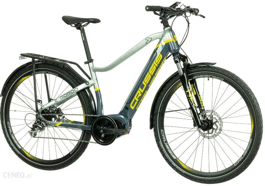 Trekkingowy rower elektryczny Crussis e-Gordo 7.7-M – 2022 to niezawodny rower do codziennej jazdy i wszelkiego rodzaju wycieczek. Model ten może pochwalić się wyjątkową geometrią ramy, centralnym napędem BAFANGMAX oraz w pełni zintegrowanąbaterią 20Ah, dzięki czemu jest doskonale wyważony. Co więcej, bateria o dużej pojemności pozwala na przejechanie nawet do 170 km. Błotniki i tylny bagażnik zapewniają najwyższy komfort podczas jazdy. Na kolorowym wyświetlaczu LCD można wybrać jeden z 5 trybów wspomagania, a port USB umożliwia ładowanie urządzeń mobilnych.Trekkingowy rower elektryczny Crussis e-Gordo 7.7-M – 2022 posiada 28-calowe koła i wysokiej jakości opony Schwalbe Land Cruiser. 8-biegowa przerzutka i hydrauliczne hamulce tarczowe pozwalają na bezpieczną i komfortową jazdę, a amortyzowany widelec Suntour NEX HLO DS 700c o skoku 63 mm sprawia, że rower nadaje się do jazdy w umiarkowanym terenie. Rower Trekkingowy Crussis e-Gordo 7.7-M – 2022 jest tak dobry, że nic Cię nie zatrzyma.Regulowany widelecTrekkingowy rower elektryczny Crussis e-Gordo 7.7-M – 2022 wyposażony jest w amortyzowany widelec Suntour NEX HLO DS 700c o skoku 63 mm, który dostosowuje się do wagi użytkownika. Wystarczy, że wyregulujesz napięcie sprężyny, a e-rower dostosuje się do Twojej wagi i stylu jazdy. Dobrze wyregulowany widelec absorbuje wstrząsy podczas jazdy w terenie i jednocześnie nie amortyzuje zbyt mocno na płaskiej powierzchni. Co więcej, widelec można zablokować za pomocą mechanizmu korony.Wydajny i niezawodny akumulatorAkumulator Samsung 36V/20Ah (720Wh) o dużej pojemności jest sercem roweru. Akumulator jest całkowicie zintegrowany z ramą, dzięki czemu rower (wraz z napędem centralnym) jest znakomicie wyważony. Bateria pozwala na przejechanie do 170 km na jednym ładowaniu (w zależności od profilu trasy). Ponadto akumulator jest wyposażony w system BMS (Battery Management System), który chroni go przed przegrzaniem, zwarciem i przeładowaniem.Potężny napędBAFANG MAX Drive (M400) z momentem obrotowym 80Nm posiada czujnik siły nacisku na pedałowanie, który sprawia, że im bardziej pedałujesz, tym bardziej silnik będzie Cię wspomagał. Silnik jest umieszczony w centralnej części roweru, co zapewnia optymalny środek ciężkości i sprawia, że opona utrzymuje kierunek jazdy.Oprócz informacji o stanie baterii i aktualnym trybie wspomagania, czytelny kolorowy wyświetlacz LCD pokazuje również prędkość i przejechany dystans. Ponadto na wyświetlaczu znajduje się gniazdo USB, które umożliwia ładowanie urządzeń przenośnych (np. telefonu, nawigacji, oświetlenia).Opis techniczny:RamaAlu 6061 (18“, 20“)SilnikBAFANG MAX drive, center, 250W (max 500W), 80 NmBateriaSamsung Li-ion 36 V/20 Ah (720 Wh), wyjmowana – może być ładowana oddzielnieŁadowarka4 AZasięgDo 170 kmTylna przerzutkaSRAM X4 / SHIMANO Acera RD-M360-L**Manetka zmiany biegówSRAM X4 / SHIMANO SL-M310**ŁańcuchKMC X8Liczba biegów1 x 8KasetaSRAM PG-820, 8 speeds / SHIMANO CS-HG31**WidelecSUNTOUR NEX HLO DS 700c, 63 mm travel, lockout (fork)HamulceHydraulic SRAM Level / SHIMANO BR-MT200, rotor 180/160 mm (front/rear)**Panel sterowaniaLCD panel w/ USB port, 5 assistance modes (color display)OponySCHWALBE Land Cruiser Plus 28*1.75ZawórAVObręczeCRUSSIS 28″, double-walled, lined, 19 mmPiastaCRUSSIS disc, wreath bearing, 32DHeadset / łożyska sterówSemi 11/8MostekCRUSSIS Al, 105 mm, adjustableKierownicaCRUSSIS Al, 700 mmGripyCRUSSIS 100% siliconePedałyWELLGO, alu w/ reflectorSztycaCRUSSIS w/ lock, 30.4 / 350 mm or 400 mmSiodełkoSelle ROYALWagaNie ma ustalonego standardu ważenia rowerów elektrycznych. Niektórzy producenci twierdzą, że ich rowery są lżejsze niż w rzeczywistości. Jeśli chcesz wiedzieć, ile waży dany rower, zważ go w sklepie lub zapytaj nas o jego wagę.Limit wagi / nośność120 kg