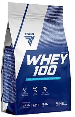 TREC WHEY 100 900gopakowanie proszekNAJLEPSZE BIAŁKO DLA WZROSTU MIĘŚNI!High Performance Pure Protein Ideal for Gaining Muscle and Weight Control• Czysty koncentrat białka serwatkowego (100% Whey Protein Concentrate)• Szybkie i efektywne białko o minimalnej zawartości tłuszczu i laktozy• Najwyższej klasy surowiec w formie instant o doskonałej rozpuszczalności• Szeroka gama wyszukanych i dopracowanych smakówWHEY 100 zawiera 100% najwyższej jakości koncentratu białka serwatkowego, który jest idealnym źródłem pełnowartościowych protein zwierzęcych. WHEY 100 jest bogaty we wszystkie niezbędne do budowy włókien mięśniowych aminokwasy, w tym BCAA i L-Glutaminę. WHEY 100 doskonale się rozpuszcza i szybko się wchłania, a zawarte w nim proteiny serwatkowe intensywnie stymulują prowadzące do rozbudowy muskulatury procesy anaboliczne.PERFEKCYJNE BIAŁKOWHEY 100 zawiera 100% koncentratu białka serwatki, o stężeniu czystego białka powyżej 80%. WHEY 100 wytwarzany jest w procesie ultrafiltracji, dzięki czemu charakteryzuje się bardzo niską zawartością tłuszczu oraz laktozy. Do produkcji WHEY 100 wykorzystano najwyższej jakości koncentrat białek serwatkowych – wysoko oczyszczone i szybkodziałające źródło pełnowartościowych protein.CZYSTA JAKOŚĆWHEY 100 zawiera wyłącznie białko serwatkowe, bez zbędnych dodatków obniżających zawartość protein w produkcie. Koncentrat białek serwatki należy do najpopularniejszych i najbardziej efektywnych protein naturalnego pochodzenia. WHEY 100 doskonale uzupełnia niedobór białka powstający przy jego zwiększonym zapotrzebowaniu, szczególnie w sportach wyczynowych, kulturystyce oraz w czasie diet redukcyjnych. Najwyższej klasy surowiec w formie instant użyty do produkcji WHEY 100 charakteryzuje się wysoką wartością biologiczną (BV104) oraz doskonałą czystością i rozpuszczalnością.ANABOLICZNE UDERZENIE PROTEIN SERWATKIWHEY 100 zawiera skoncentrowane białko serwatkowe, które jest bardzo łatwo absorbowane przez organizm. Ze względu na wyjątkową szybkość trawienia i wchłaniania, najważniejsze anaboliczne aminokwasy błyskawicznie docierają do mięśni. Wyjątkowo wysoka zawartość szybko uwalnianej L-Leucyny, działa jak starter procesów anabolicznych. Intensywny napływ składników budulcowych pobudza syntezę białek mięśniowych, zwiększając jej intensywność nawet do 70%. Pozostałe aminokwasy rozgałęzione (BCAA) i L-Glutamina hamują jednocześnie niekorzystne reakcje kataboliczne. Przewaga procesów anabolicznych sprzyja budowaniu najwyższej jakości masy mięśniowej.ZAPROJEKTOWANE ZE SMAKIEMWHEY 100 to nie tylko najlepszy surowiec, to także niezapomniane wrażenia dla Twojego podniebienia. WHEY 100 to wyszukane, niebanalne i starannie dopracowane smaki, które na długo pozostaną w Twojej pamięci. Unikalna jakość i skład WHEY 100 znacznie przewyższają właściwości innych produktów tego typu dostępnych na rynku.KOMU POLECANY JEST PREPARAT?WHEY 100 to uniwersalny produkt dla każdego, idealny do codziennego uzupełniania białka, który szybko dostarcza dużej ilości niezbędnych do wzrostu mięśni anabolicznych aminokwasów. WHEY 100 to bogactwo najważniejszych składników o działaniu anabolicznym, których poziom jest krytyczny dla szybkości rozbudowy muskulatury i regeneracji potreningowej. Zastosuj WHEY 100 do 1,5 h po zakończeniu ćwiczeń, a Twoje mięśnie szybko otrzymają zastrzyk niezbędnego budulca i silny impuls do wzrostu. Produkt doskonale nadaje się także do zwiększania wartości odżywczej posiłków i uzupełniania ich o dodatkowe łatwo strawne białko. Osobom o wolniejszej przemianie materii zaleca się stosowanie preparatu przed snem oraz między posiłkami, co pozwala znacząco przyspieszyć metabolizm.SPOSÓB UŻYCIA:Jednorazową porcję preparatu – 30 g (2 miarki – 100 cc) rozpuścić w 200 ml wody lub mleka, używając do tego szejkera lub miksera. W zależności od zapotrzebowania należy stosować 2-3 porcji dziennie. W dni treningowe: I porcja rano po przebudzeniu, II porcja do 1,5 godz. po treningu oraz III porcja przed snem. W dni nietreningowe: I porcja rano po przebudzeniu, II porcja pomiędzy posiłkami oraz III porcja przed snem.SKŁAD PRODUKTU:patrz obrazekSKŁADNIKI DODATKOWE:kakao – substancja wzmacniająca smak i zapach dla smaku toffi, czekoladowego, czekoladowo-wiśnio-wego, czekoladowo-sezamowego, czekoladowo-kokosowego i czekoladowo-miętowego, sól sodowa karboksymetylocelulozy, guma ksantanowa, karagen – zagęstniki, kwas cytrynowy, kwas jabłkowy – regulatory kwasowości dla smaku truskawkowego, malinowego, wiśniowego i jabłkowo-cynamonowego, sukraloza – substancja słodząca, beta-karoten – barwnik dla smaku waniliowego, pinakolada i ciasteczkowego, żółcień chinolinowa – barwnik dla smaku bananowego, czerwień koszenilowa – barwnik dla smaku truskawkowego, malinowego i wiśniowego, karmel E150c – barwnik dla smaku kawowego, toffi, orzechowego i jabłkowo-cynamonowego, aromaty.Dawkowanie:1 porcja to 30 gram produktu.Spożywać w formie szejka od 1 do 4 razy na dobę po 1 porcji.Informacje żywienioweIlość produktu 100 g 90 g** 30 gWartość odżywczaWartość energetyczna 1620kj / 382kcal(19%*) 1458/ 344kcal (17%*) 486kj / 115kcal (6%*)Białka 81,20g (162%*) 73,08 g (146%*) 24,36 g (49%*)Tłuszcze 2,90g (4%*) 2,61 g (4%*) 0,87 g (1%*)W tym tłuszcze nasycone 1,70g (9%*) 1,53 g (8%*) 0,51 g (3%*)W tym cukry proste 1,80g (2%*) 1,62 g (2%*) 0,54 g (1%*)Węglowodany 7,80g (3%*) 7,02 g (3%*) 2,34 g (1%*)Sól 0,65g (11%*) 0,59g (10%*) 0,20g (3%*)Składniki aktywneKoncentrat Białka Serwatki 94,65 g 85,19 g 28,40 g*Referencyjna wartość spożycia dla przeciętnej osoby dorosłej (8400 kJ/2000 kcal)**Dzienna porcja produktu
